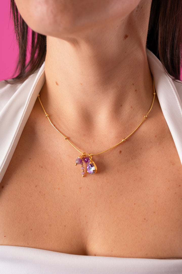 Collar con dije con cristal SW, rondel y agathas. La cadena puede variar según disponibilidad.