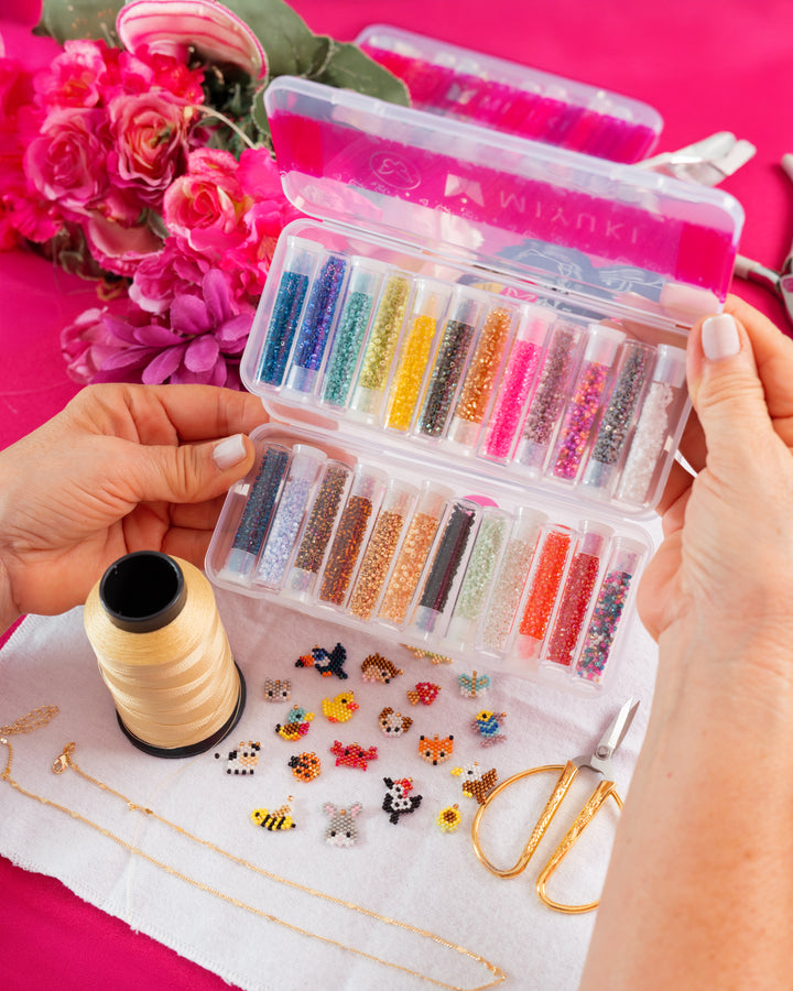 Con el KIT CREA TUS CHARMS, obtienes todo lo necesario para crear 20 dijes hermosos con MIYUKI. La guia para armar tus piezas las puedes pedir por nuestra linea de WhatsApp.